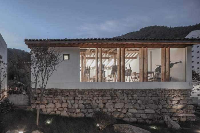本民宿案例屬于老宅翻新,外在古樸,內(nèi)在時尚。 基地原本為一百年老宅,主體結(jié)構(gòu)為夯土墻和穿斗式木結(jié)構(gòu)。設(shè)計最大程度保留了夯土墻和木結(jié)構(gòu),新建部分采用磚混結(jié)構(gòu)。最終新建部分與保留部分形成一種互相糾纏,你中有我我中有你的關(guān)系。建筑不再只是一座鄉(xiāng)村民居,變成了一座鄉(xiāng)土博物館,一部時光穿梭機。